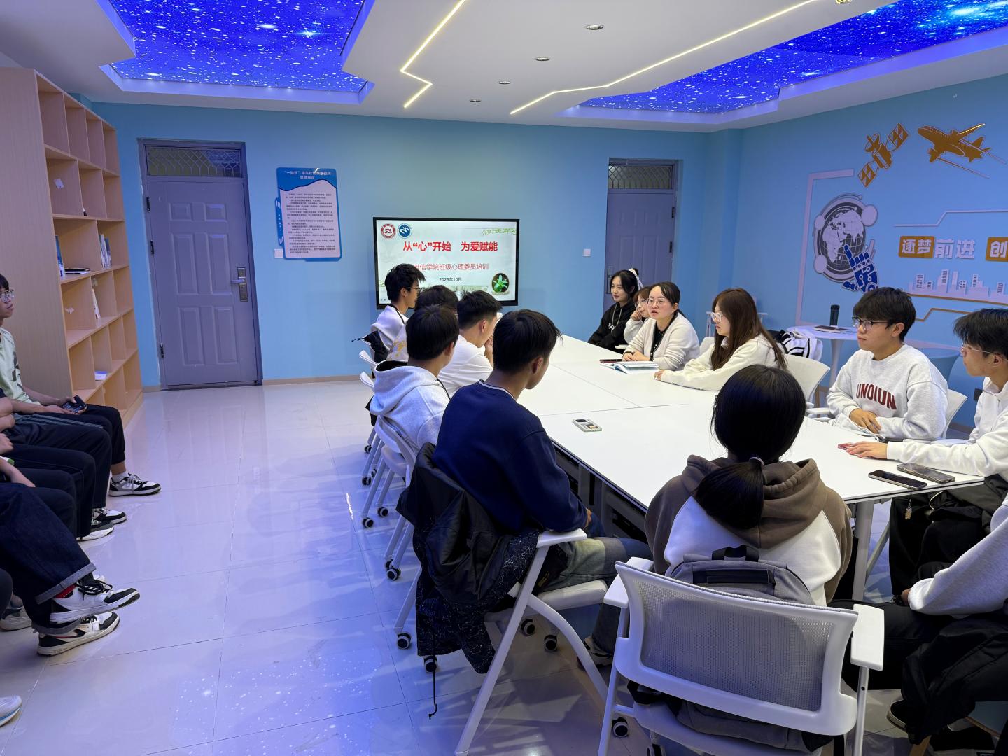 为进一步夯实大学生心理健康教育工作基础,充分发挥班级心理委员在朋辈支持中的关键作用,10月22日,电信学院在18号公寓“一站式”学生社区内的“寓”见“悦”创空间,成功举办了以“从‘心’开始,为爱赋能”为主题的心理委员培训。本次活动旨在提升心理委员的工作能力,激发其服务热情,共同营造温暖互助的校园心理氛围。