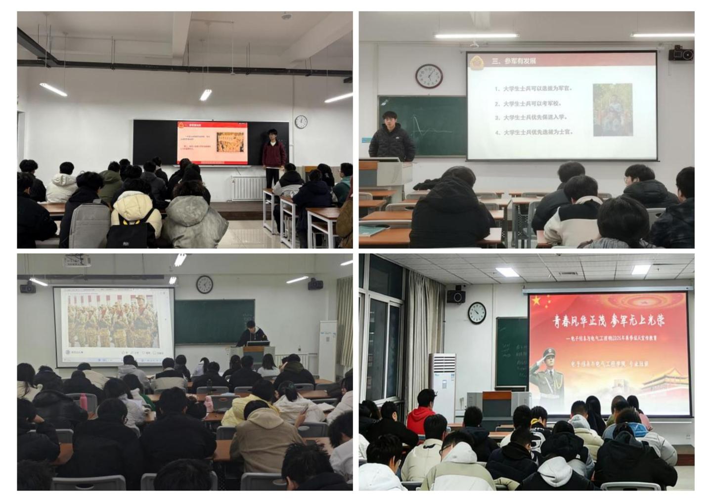 为积极响应学校2026年春季“征兵宣传月”工作部署,深入践行“青春担当,强军有我”主题精神,电信学院精心谋划、周密组织,扎实推进“一场主题班会、一场政策宣讲会、一系列‘进班入寝’一对一服务”的“三个一”专项宣传活动,全方位激发学子参军报国热情,推动征兵宣传工作落地见效。